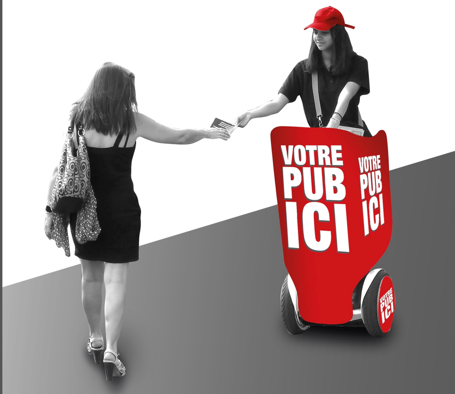 Vélo publicitaire, Segway publicitaire, grands journaux, écrans led dynamiques, conseils etc.